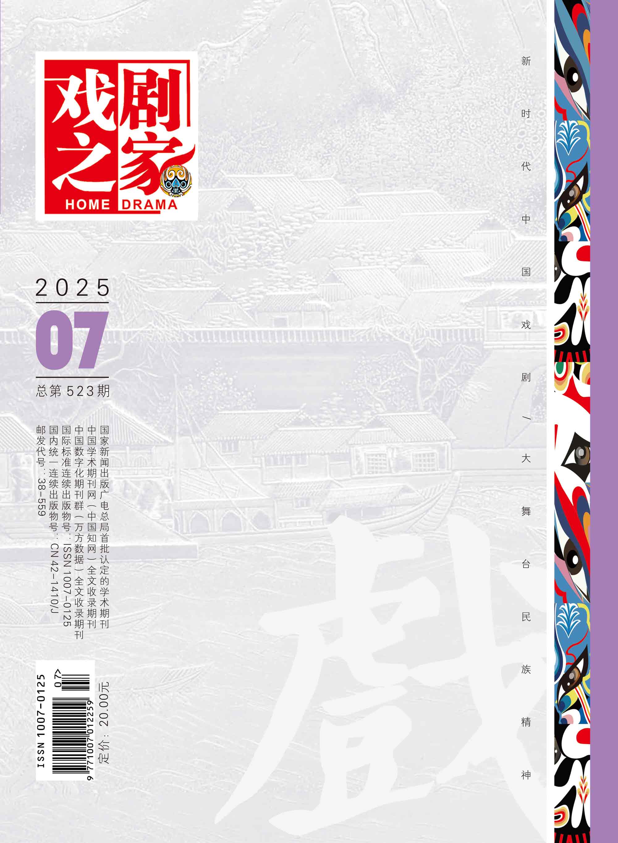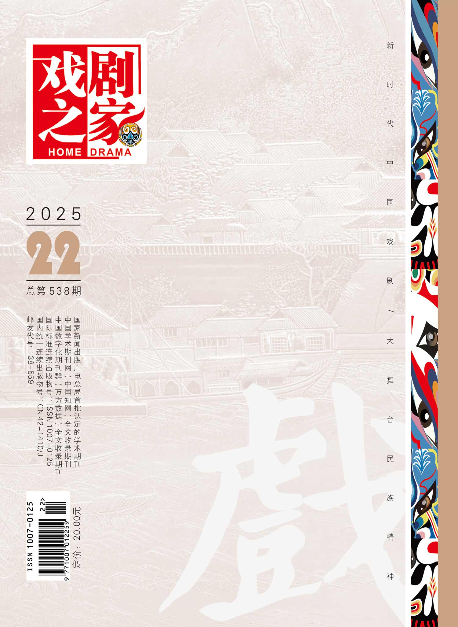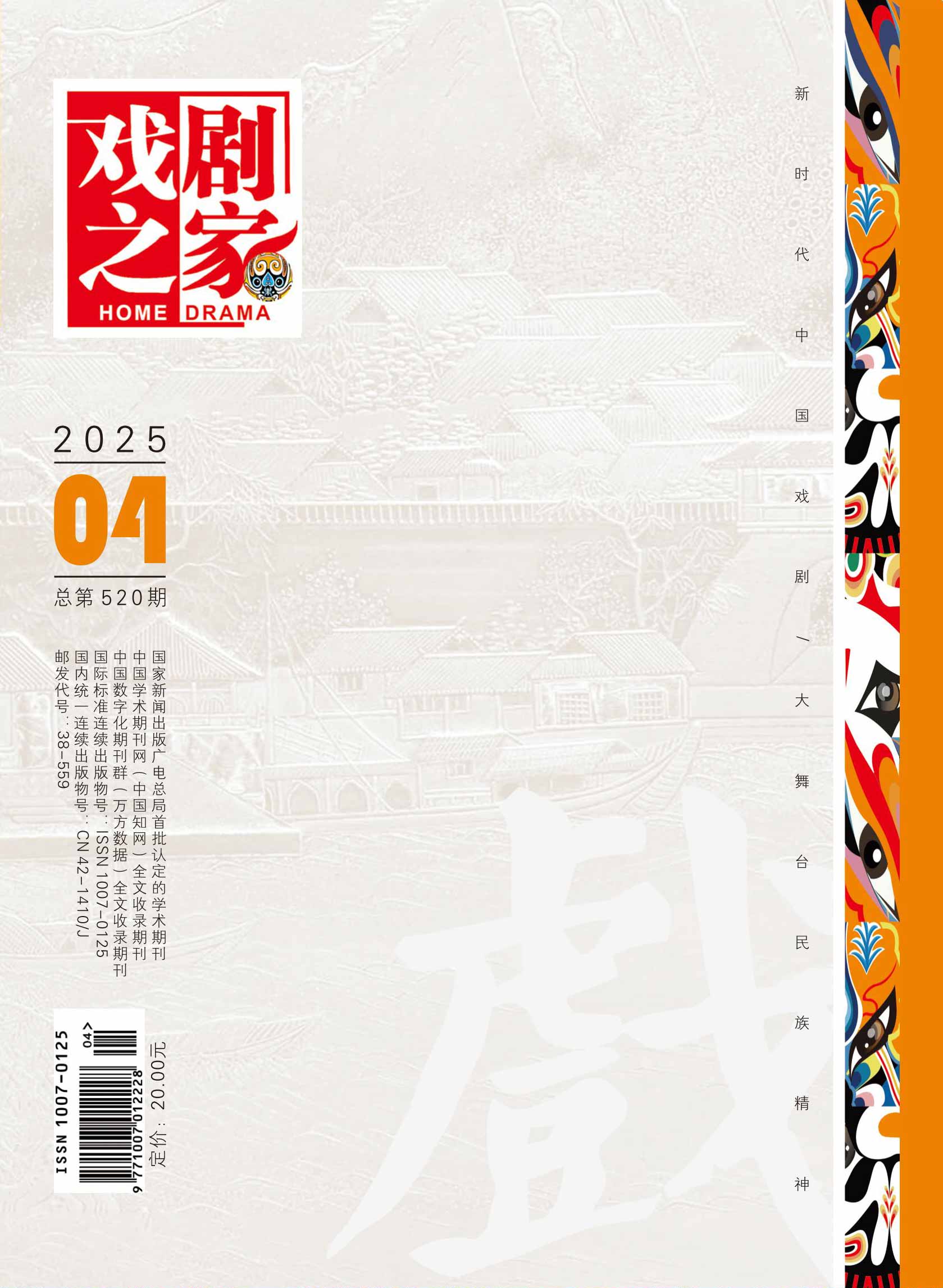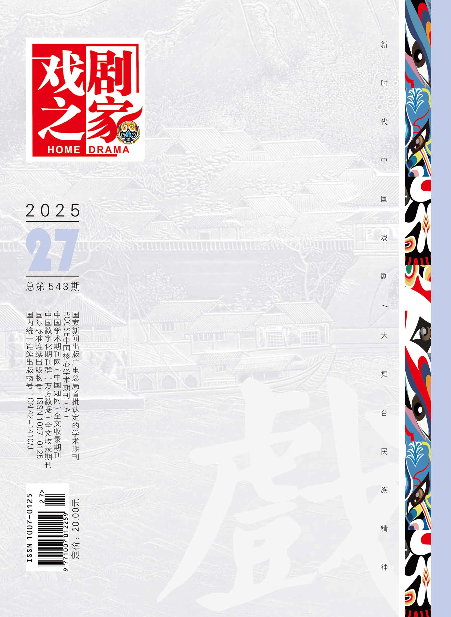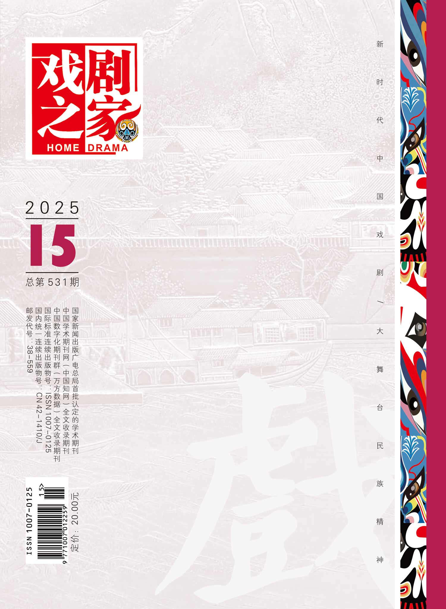 主管单位:湖北省文学艺术界联合会 主办单位:湖北今古传奇传媒集团有限公司 编辑出版:湖北戏剧之家杂志社有限公司 邮发代号:38-559 创刊时间:1991年 出 版 地:湖北省武汉市 出版周期:旬刊 期刊语种:中文 期刊开本:大32开 国际标准连续出版物号:ISSN1007-0125 国内统一连续出版物号:CN 42-1410/J