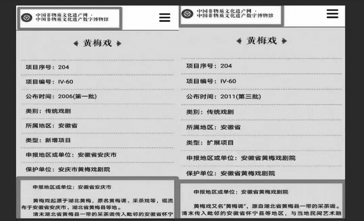 2006年5月安庆市在向国家申报非遗传承保护名录时,在申报地区或单位填写:“安徽省安庆市,黄梅戏起源于湖北黄梅,原名黄梅调,采茶戏等,现流布于安徽省安庆市、湖北省黄梅县等地。”
