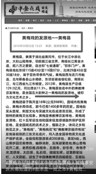 2016年3月《中安在线》安庆频道刊发文章写有一行醒目大字:“黄梅戏的发源地——黄梅县。”